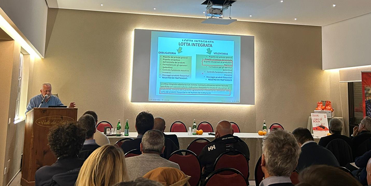 Sul fronte applicativo, Salvatore Leocata, responsabile tecnico di campo di OP Esperidio, ha tradotto i contenuti scientifici in pratiche agronomiche concrete, ribadendo il ruolo cruciale del supporto tecnico continuativo per accompagnare le imprese nelle scelte quotidiane. Particolare risalto è stato dato all’importanza della conoscenza dei meccanismi di azione delle molecole chimiche, in funzione dell’adozione di strategie di difesa “anti-resistenza”.