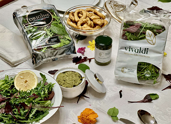 Accanto alla linea Aromamì, Fratelli Cafaro porterà a Berlino anche le proprie linee di baby leaf, Vivaldì e Origine, espressione di una produzione consolidata e continuativa. Tra le produzioni di punta: rucola, spinacino e valeriana. L’azienda opera a Eboli, nel cuore della Piana del Sele, uno dei distretti orticoli più vocati d’Italia, su una superficie complessiva di 170 ettari, di cui 70 in pieno campo e 100 in serra, garantendo così forniture costanti durante tutto l’anno.