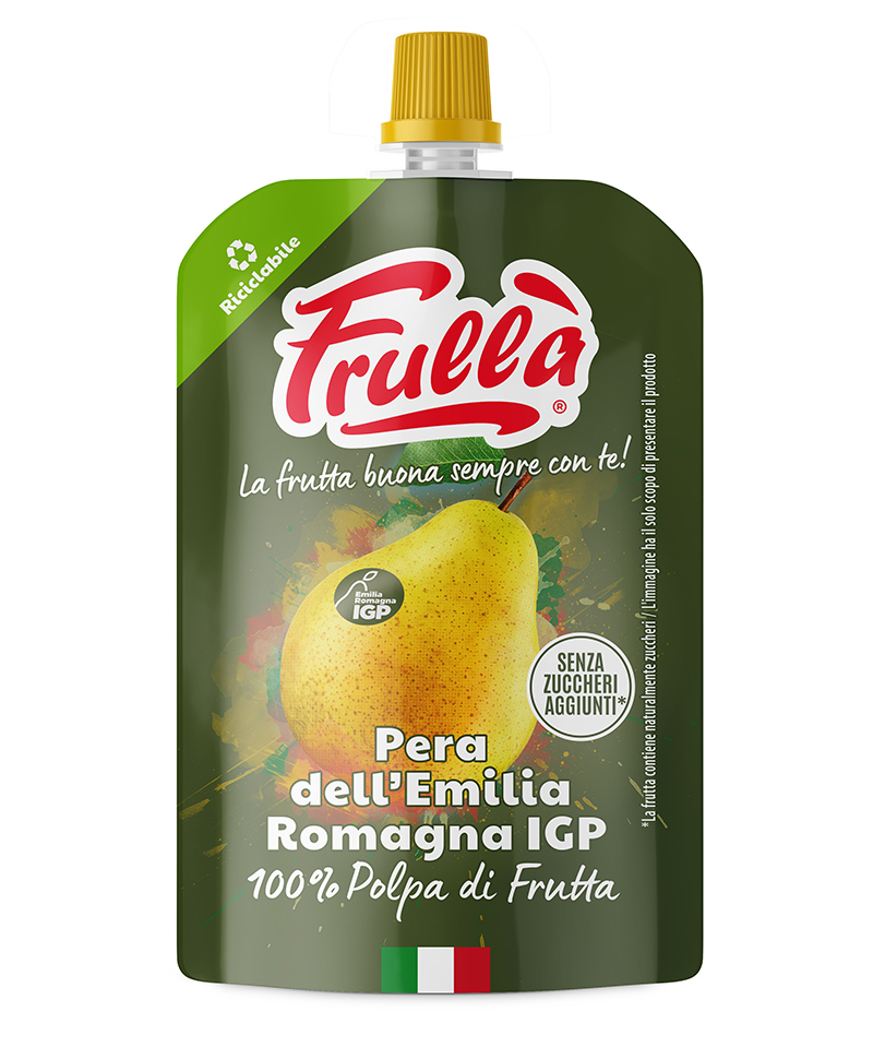 Da questo patrimonio prende forma la nuova linea Frullà Pera dell’Emilia-Romagna IGP, grazie alla collaborazione con il Consorzio della Pera dell’Emilia-Romagna IGP: una gamma di polpe di frutta che racchiude tutta la bontà naturale di un frutto simbolo del territorio e della frutticoltura italiana, mantenendone intatta l’anima più autentica.
