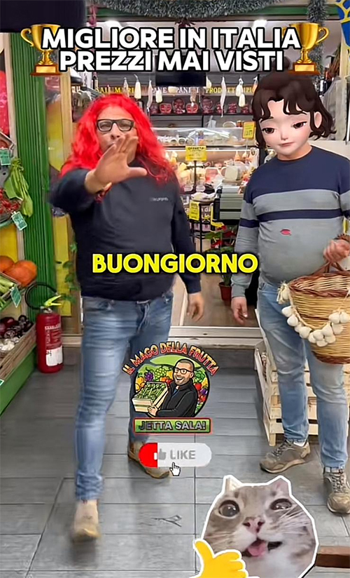 Nel settore ortofrutticolo c’è chi questa dinamica l’ha capita bene: Il Mago della Frutta, alias Alessandro Pitingolo, titolare dell’omonimo negozio di Montepaone Lido (Catanzaro). Sui social è attivo come @ilmagodellafruttapitingolo su Instagram e @il_mago_della_frutta su TikTok, piattaforma dove ha raccolto la community più ampia, raggiungendo i 13,3k followers.