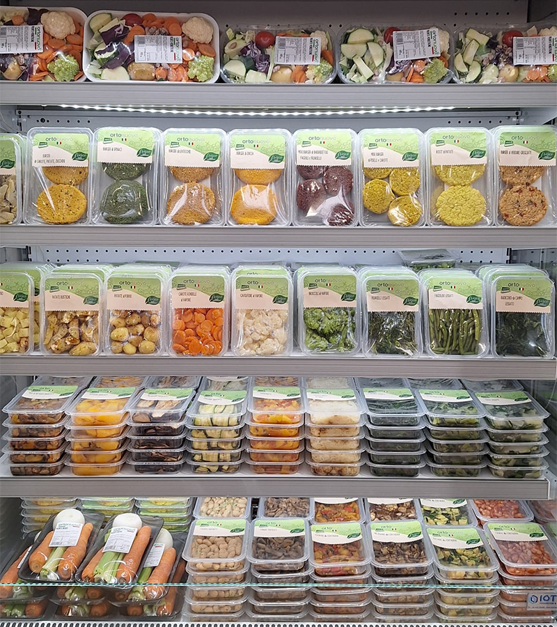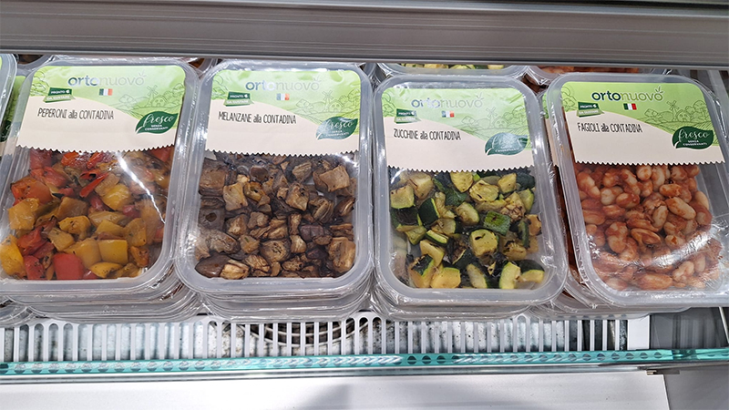 Da questa filosofia nasce anche la linea “Alla contadina”, che rielabora un classico della proposta Ortonuovo. “Abbiamo pensato alla verdura “alla contadina”, che altro non è che la nostra verdura grigliata: peperoni, melanzane e zucchine, oltre ai fagioli. Cambia però il taglio, che diventa cubettato, quindi più smart, e si aggiunge una ricettazione più evoluta e saporita, con rosmarino, sale e olio: elementi che danno una marcia in più. La griglia “di per sé” spinge il gusto naturale, ma così lo eleviamo ulteriormente”.