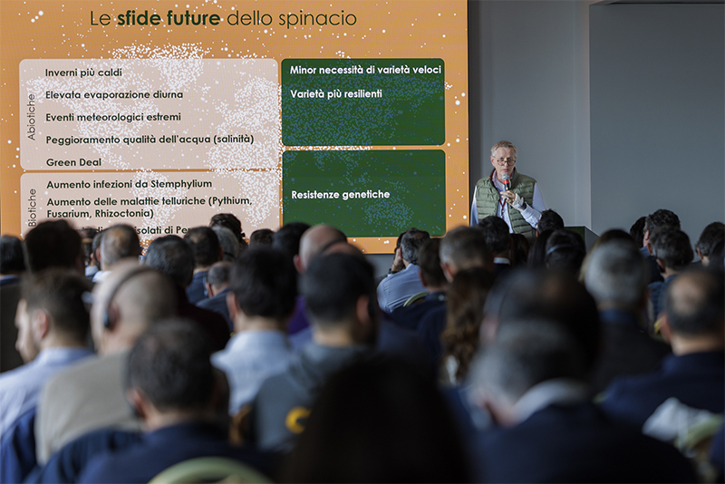 È stato David Courand, Team Leader Breeding di Rijk Zwaan a Fijnaart (Paesi Bassi), ad illustrare come fitopatologia, diagnostica e breeding interagiscano per sviluppare soluzioni che affrontino le principali sfide dello spinacio, comprese le malattie e gli effetti del cambiamento climatico.