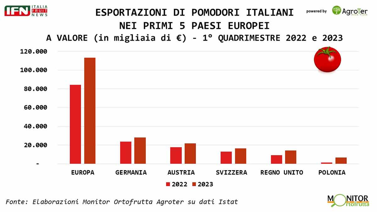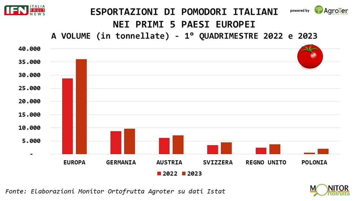 Oltre il 90% rimane nel Vecchio Continente. Pomodoro in grande spolvero