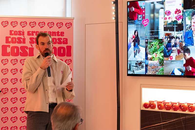 Oltre alla limited edition, l’operazione “Apple Crush” si sviluppa attraverso due ulteriori momenti chiave: un pop-up esperienziale a Milano il 14 febbraio e la presenza di Pink Lady® alla sfilata GCDS durante la Fashion Week, rafforzando il dialogo con il mondo della moda contribuendo al rinnovamento dell’immagine della categoria.