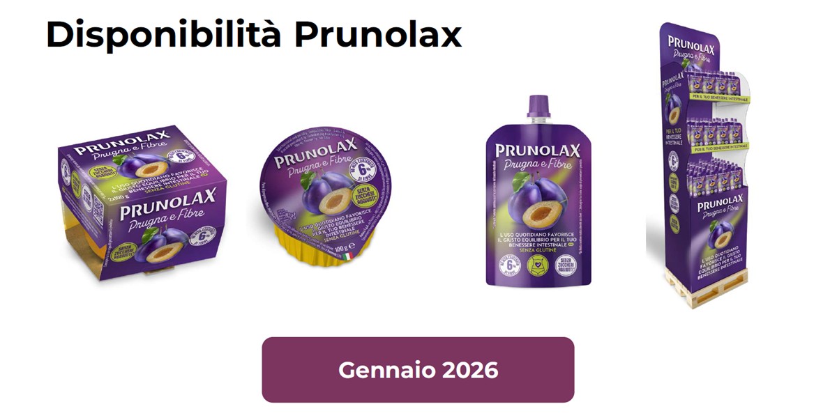 Da gennaio 2026, la gamma Prunolax comprenderà la Vaschetta da 100 g, ideale per il consumo domestico, il Bi-pack da 2x100 g, pensato per rispondere alle nuove abitudini di consumo e ottimizzare spazio e visibilità a scaffale, a cui si aggiungerà anche il doypack da 100 g richiudibile, pratico e perfetto per il consumo fuori casa. Il nuovo formato sarà accompagnato da espositori autoportanti in cartone con grafica personalizzata, studiati per massimizzare la visibilità del prodotto e valorizzare nuovo design, claim e packaging. (bf)