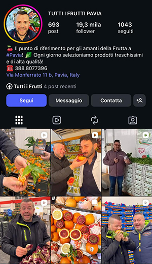 Nel cuore di Pavia, c’è un esempio concreto di questa possibilità. Tutti i Frutti di Michele Mastrodonato è passato dall’essere un piccolo negozio di quartiere a un punto di riferimento locale, grazie a due fattori chiave: ortofrutta di alta qualità arricchita da un’ampia scelta di prodotti di nicchia difficili da trovare altrove, Gdo in primis, e un uso intelligente dei social media. Michele, infatti, ha trasformato Instagram, Facebook e TikTok in strumenti quotidiani per dialogare con i clienti, raccontando non solo i prodotti freschi ma anche la cura e la passione con cui vengono selezionati ogni giorno.