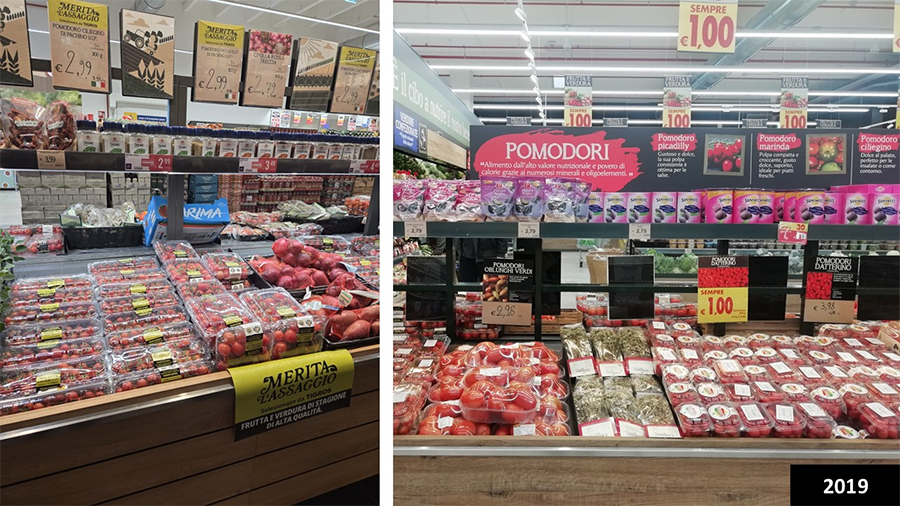 La categoria dei pomodori, ad esempio, non propone più una descrizione dettagliata delle caratteristiche delle diverse tipologie, ma punta maggiormente sugli aspetti sensoriali e palatali. Emblematica, in questo senso, è la valorizzazione della linea di referenze “Merita l’assaggio”, selezionate per garantire, all’interno del segmento, la migliore esperienza di gusto possibile e declinata sia a livello di prodotto che di scaffale.