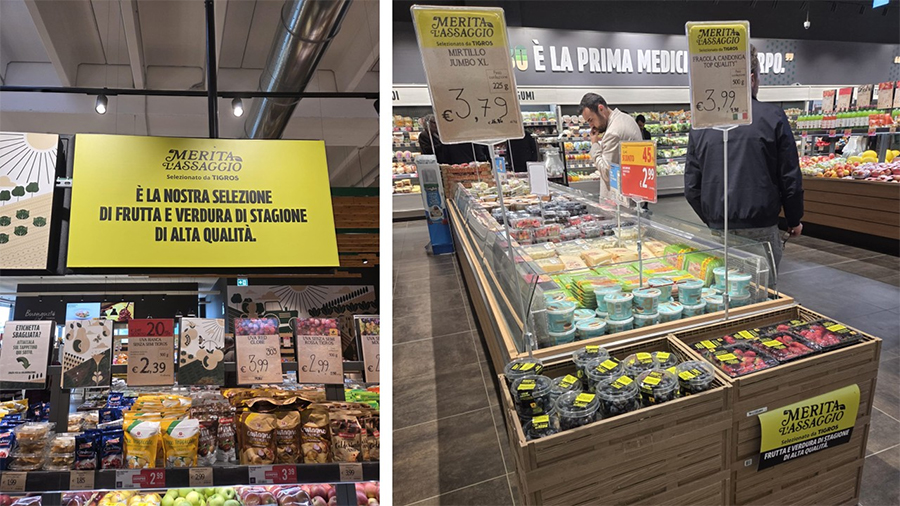 La linea “Merita l’assaggio”, contraddistinta da un pantone giallo ad alta visibilità già presente da alcuni anni in Tigros, trova applicazione soprattutto nelle categorie in cui la garanzia del gusto è più rilevante, come in questo periodo i pomodori, ma anche, in modo cruciale, la frutta estiva durante la stagione calda. Risulta così chiara e decisa l’assunzione di responsabilità da parte dell’insegna, che si propone di selezionare per i propri clienti prodotti di alta qualità, valorizzandoli con un’esposizione preferenziale nelle aree del negozio a maggiore passaggio.